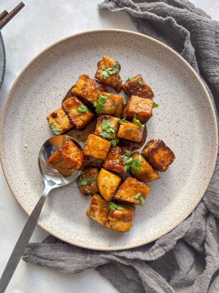 When the tofu has had time to sit in the marinade, it becomes richer in flavor and goodness. Every cube soaks up the flavours and gets ready for that perfect crisp finish. You can cook it in a skillet, bake it in the oven, or even pop it into an air fryer if that’s more your style. However you cook it, the outside turns golden and crisp, while the inside stays soft and full of flavour.